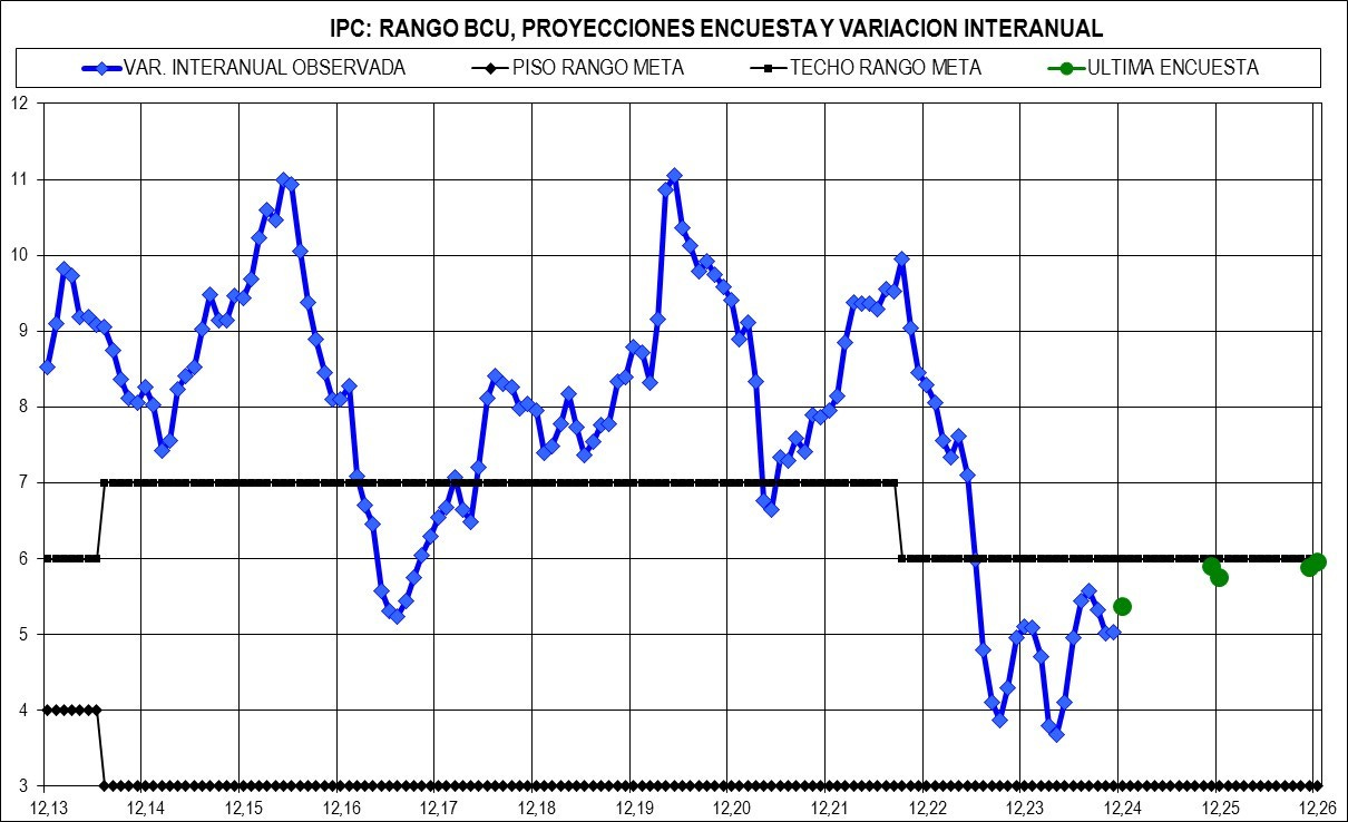 Para los próximos 24 meses, que es el Horizonte de la Política Monetaria, relevante para las decisiones del BCU sobre la tasa de interés de referencia, se la ve en 5,89%.